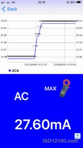 測定器は三和電気計器社製 DLC470BT クランプメーターを使用し、その測定データーを Bluetooth でパソコンやスマートフォンに出力するようにしています。