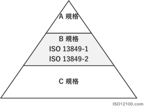 ISO 13849-1 と ISO 13849-2 はB (B1) 規格に分類されます。