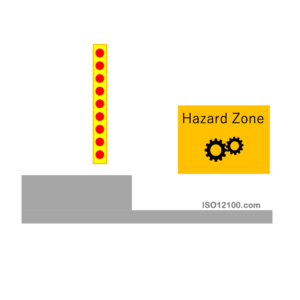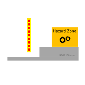 保護設備の配置における大原則は、意図したリスク低減を達成するために、危険源へのアクセスが間に合うように検出されることです。もし一つの保護設備を使用する機械に二つ以上の危険源がある場合は、それぞれの危険源に対して分離距離を計算し、最も厳しい条件すなわち最も距離が必要な条件を採用する必要があります。