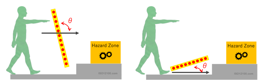 検出ゾーンの上端を乗り越えて、危険源へ手を伸ばすリスクアセスメントをします。