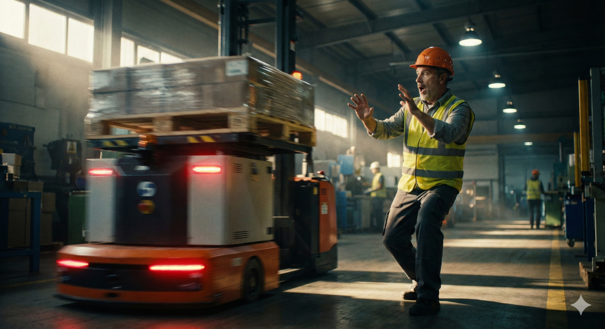 センサー等の保護装置が人の侵入を検知し、安全機能がトリガーされた瞬間です。